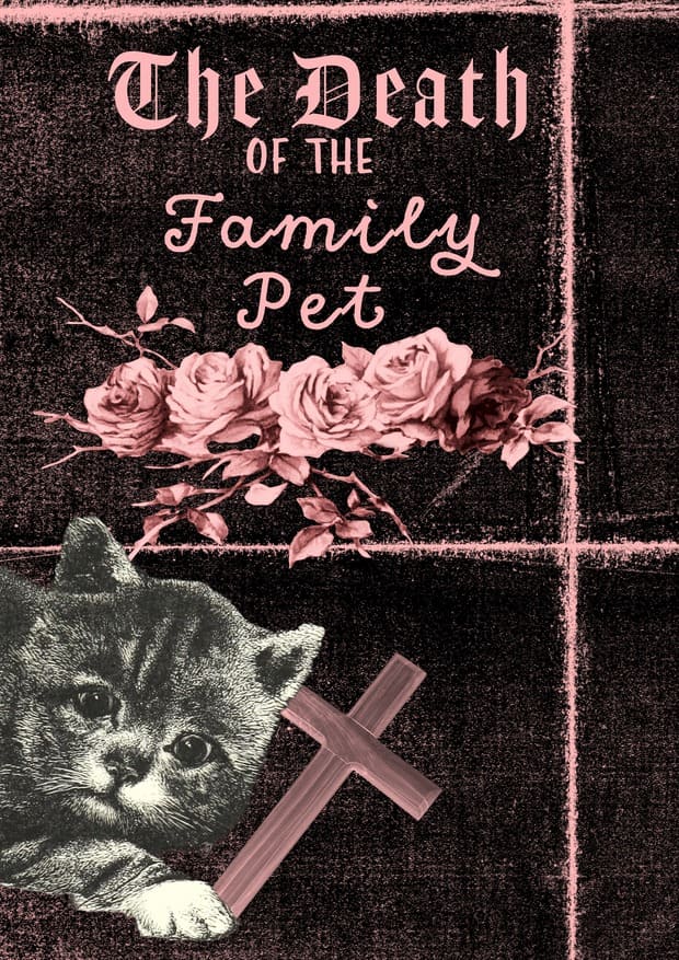 Alarmingly, cats’ eyes do stay open after they die, squashing any illusion of post-mortem peace. Though, the family had never paid much thought to a cat’s eye ball, as the creature only a minute ago was a singular, named entity, rather than a list of mouldering, faltering and tumorous parts. (A heart that was beating too slow, a stomach full of growths that was tender to the touch, a nose that was too pale, bones too brittle.) But without the electricity to animate the creature, how quickly the now sightless, yet still staring eyes had become uncanny. Bulging in their lactescent slick, the daughter had been keen to clean them with a tissue, to scrape the brown, muddy tears out of their duct before the big sleep, to make him look neat and nice, but it did not make things any less unpleasant.